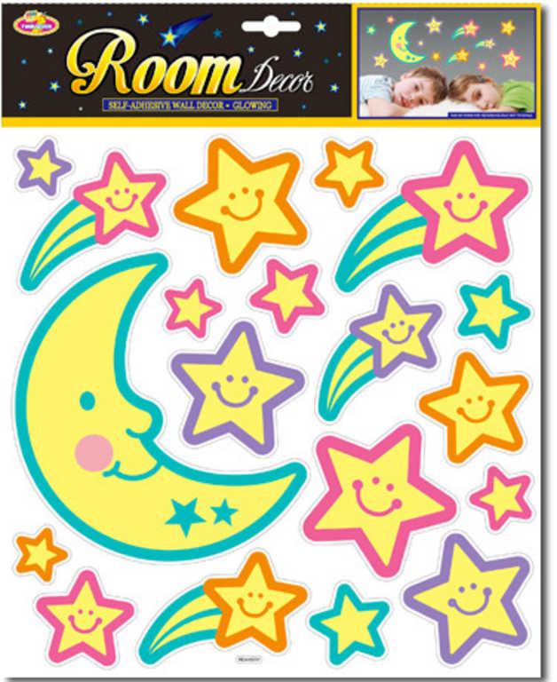 Měsíc a hvězdy nalepovací noční obloha dekorace barevná svítící ve tmě