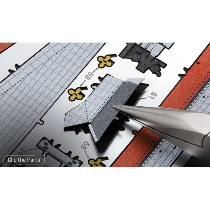 Nářadí není součástí balení. Jednotlivé díly jednoduše vyjměte z kovových plátků, v případě potřeby použijte malé štípací nůžky. Dílky se spojují k sobě pomocí zámků tvořených úchytem (zobáčkem) a otvorem. Zobáček ohněte pomocí malých tenkých kleští (nejsou součástí) a postupně spojte všechny zámky až vznikne velmi realistický mistrovský kousek.