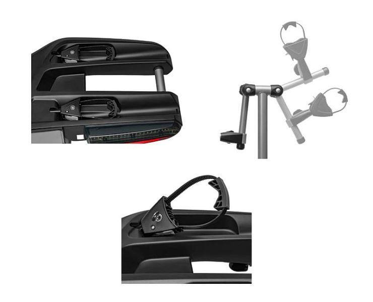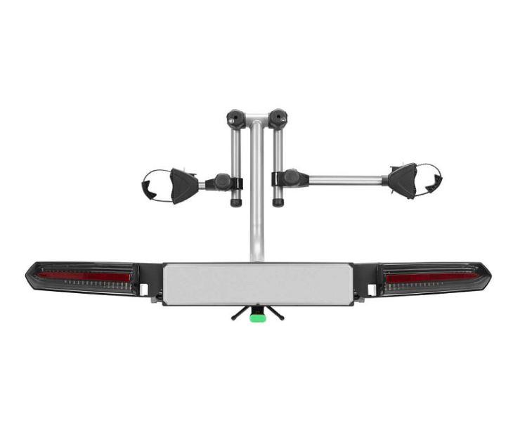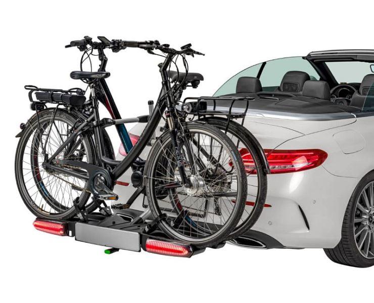 Rýchle a jednoduché automatické upevnenie nosiča na guľový čap. Kompletné uzamykateľný, vybavený držiakom registračnej značky. Jednoducho sklopný pre ľahký prístup do kufra vozidla aj s naloženými kolesami a skladný pre úsporu miesta pri jeho skladovaní. Vysoká nosnosť až 60 kg umožňuje prepravu elektrobicyklov. LED osvetlenie podčiarkuje moderný dizajn nosiča.