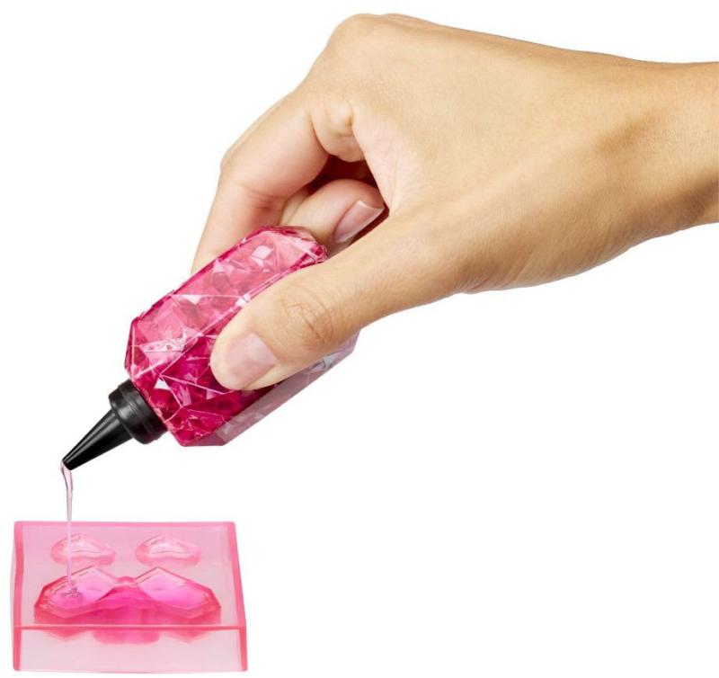 Nalijte pryskyřici do formy. Nechte ji několik minut vytvrdnout na slunci. Poté krystal vyjměte z formy a zacvakněte ho do doplňku. Pak si můžete hrát s panenkou a všemi krásnými krystalovými doplňky.