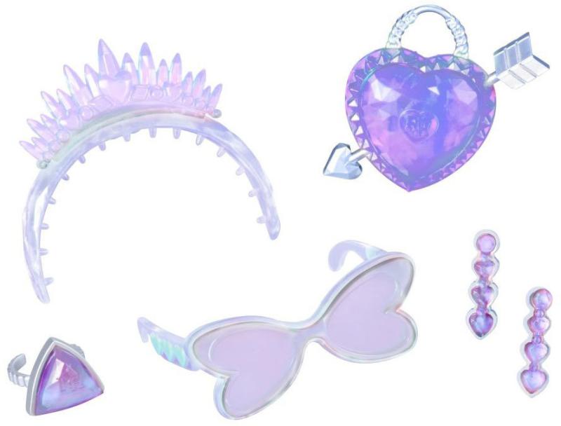 Vytvářejte a hrajte si s krystalovými módními doplňky pro panenku. Děti si zamilují vymýšlení příběhů ve světě Rainbow High, známém z populárního online animovaného seriálu.