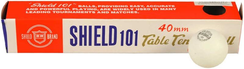 Míčky na stolní tenis ping pong Shield 101 bílé 4cm set 6ks krabička