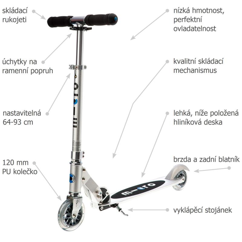 - lehká, cenově dostupná koloběžka pro juniory s kvalitou značky Micro