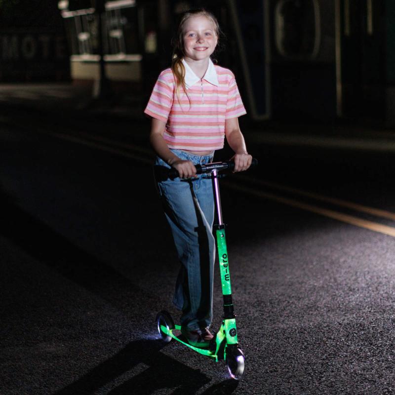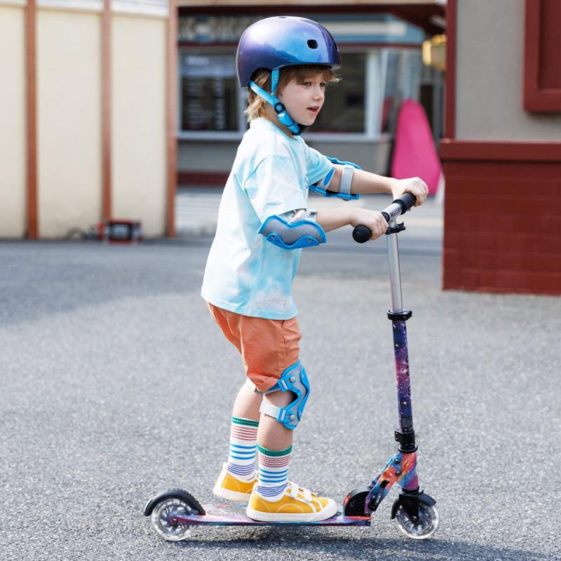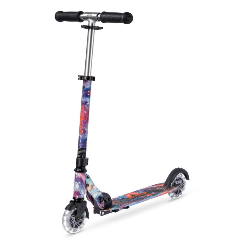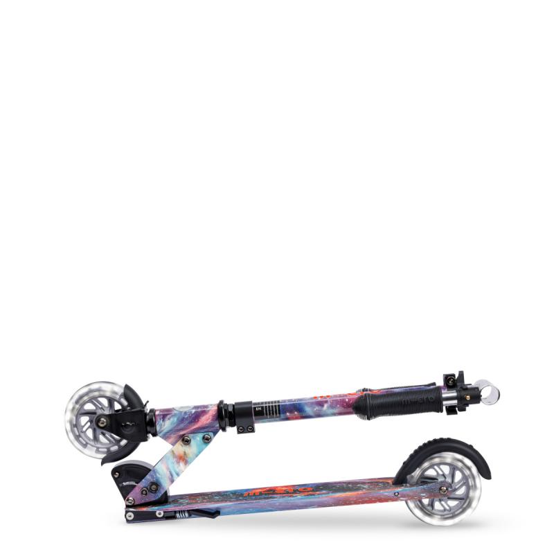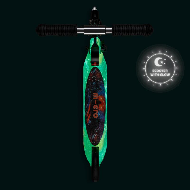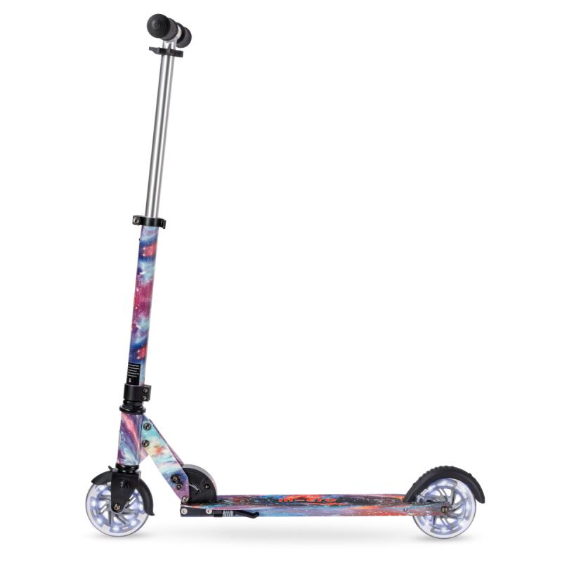 Táto detská skladacia kolobežka ponúka kombináciu praktického dizajnu a originálneho vizuálneho štýlu inšpirovaného vesmírom. Vďaka technológii Glow sa po nasvietení jemne rozžiari, čo spolu s LED kolieskami vytvára jedinečnú atmosféru pri jazde i za šera.