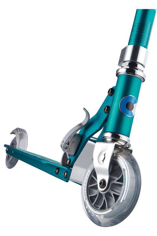 Vďaka svojej metalicky tyrkysovej farbe je táto detská kolobežka Sprite Petrol Stripe veľmi obľúbená ako medzi dievčatami, tak aj medzi chlapcami.