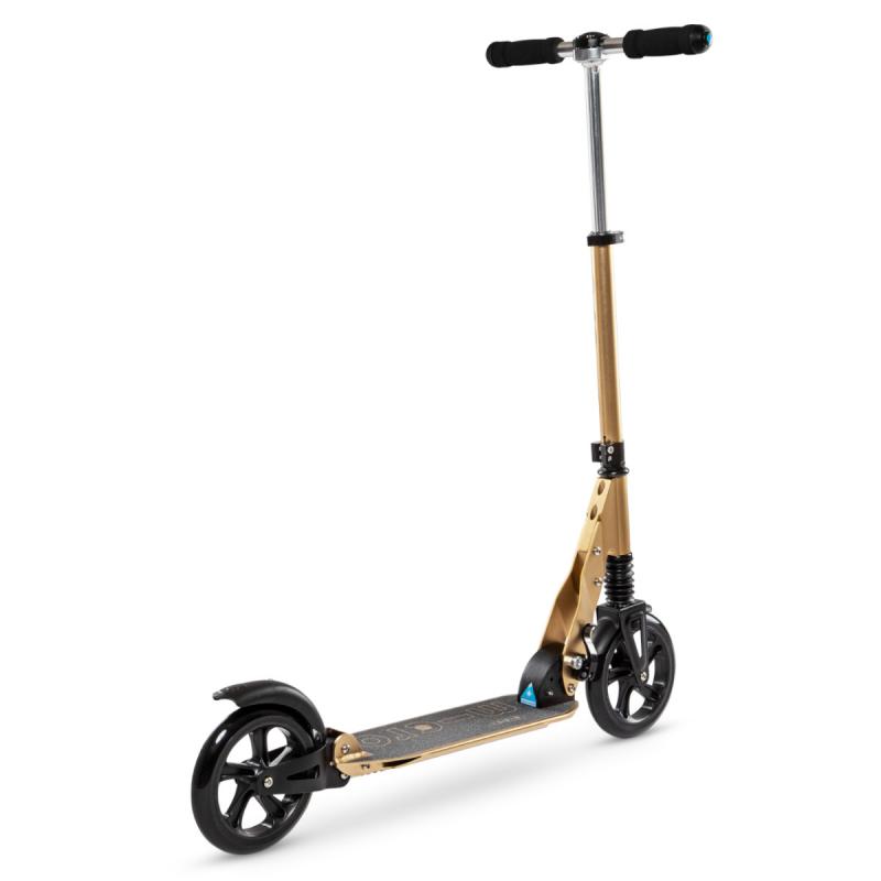 Micro Suspension Bronze je unikátna celoodpružená skladacia kolobežka v bronzovej farbe s pevnými kolieskami o priemere 200 mm.Táto, na prvý pohľad luxusne vyzerajúca kolobežka, Vás ihneď pri prvej jazde presvedčí, že máte pod sebou naozaj kus kvalitnej skladacej kolobežky.