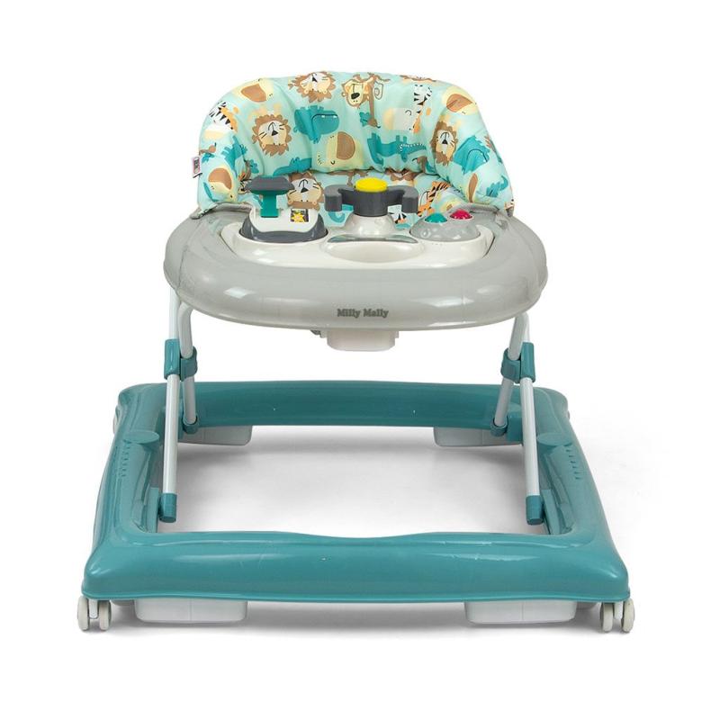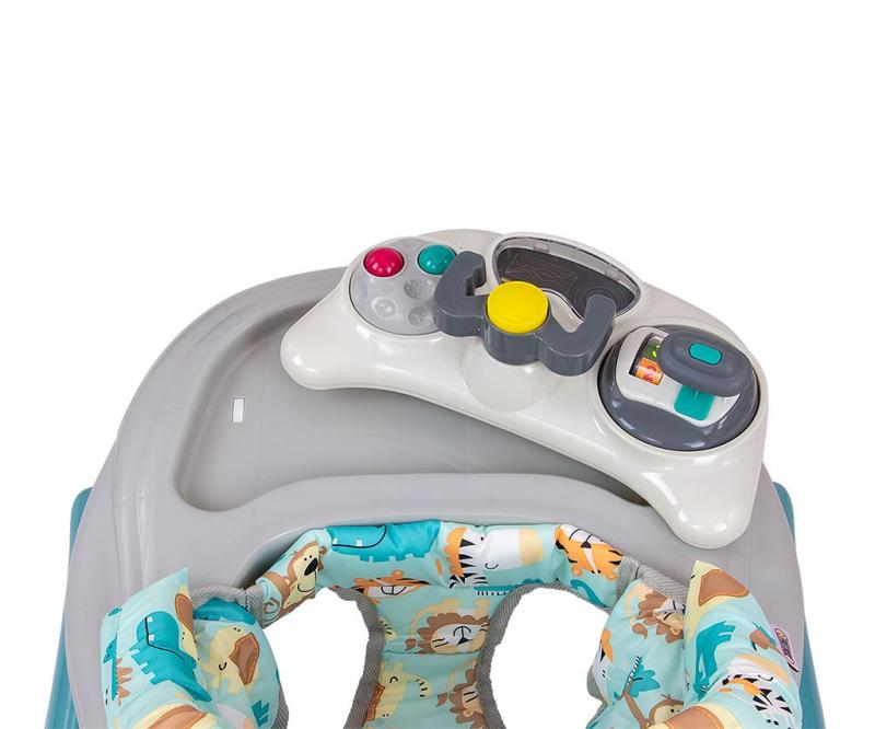 Výrobek má výukový panel, který obsahuje řadu překvapení čekajících na malé průzkumníky: světýlka, pískání, melodie, chrastítko, tlačítka a další pohyblivé prvky. Po sejmutí panelu z podnosu chodítka poslouží jako samostatná hračka, například jako společník na cesty, a deska poslouží jako hrací stolek.