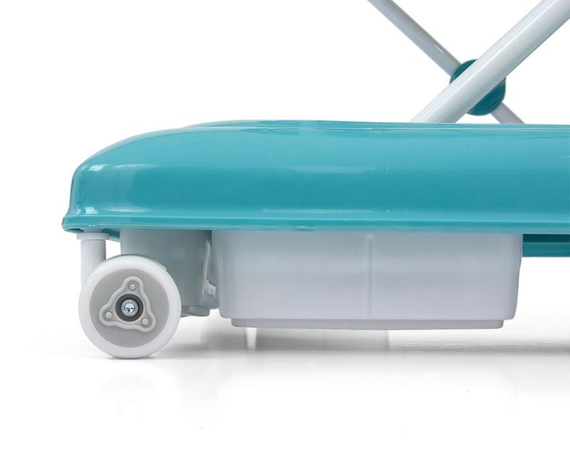 Čtyři kvalitní otočná kolečka, která nepoškrábou povrch, po kterém se pohybují, zajistí volnost pohybu a osm gumových zarážek ochrání dítě před sklouznutím ze schodů nebo jiných překážek.