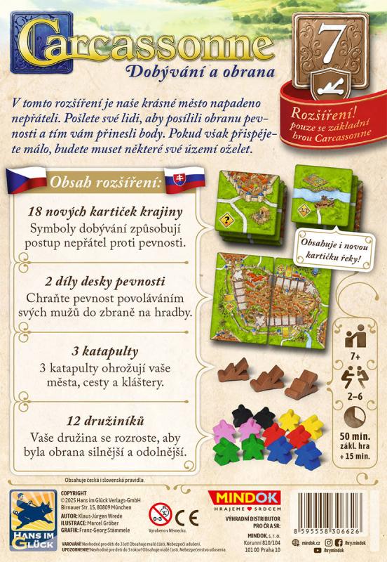 MINDOK Společenská hra Carcassonne: Dobývání a obrana 7. rozšíření (2025)Nepřítel za branami! V tomto dramatickém rozšíření se mění atmosféra celé hry. Do světa Carcassonne přichází pevnost, hradby a nebezpečné katapulty. Budete muset nejen budovat, ale i bránit – a to s rozvahou, protože každý špatný krok může znamenat ztrátu území.