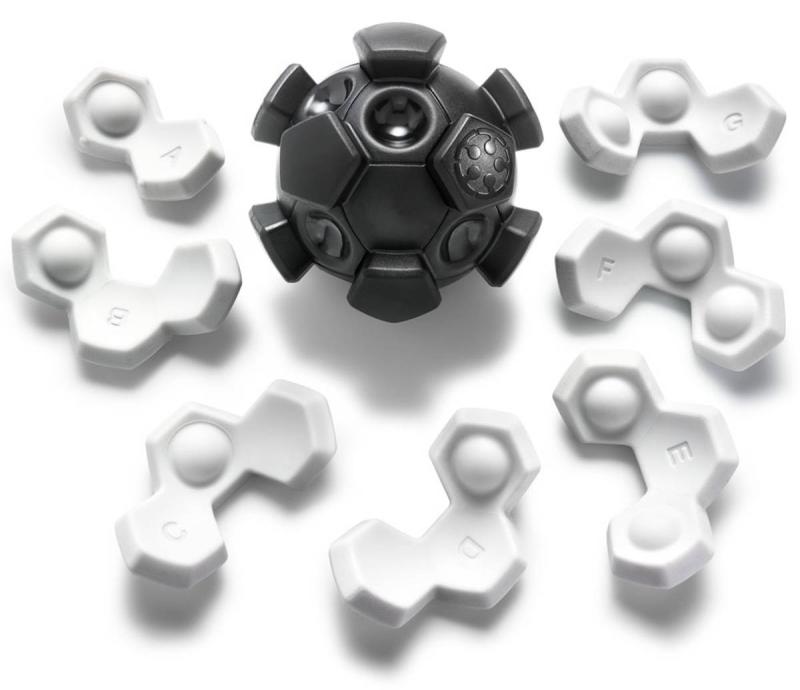 Hra začíná s černým jádrem, ze kterého odstraníte všech 7 bílých dílků. Těchto sedm dílků tvoří skládačku: šest z nich se skládá ze tří polí a jeden startovní dílek se skládá ze dvou polí. Na začátku si sami zvolíte startovní pozici pro dvoupolní startovní dílek, který lze umístit na 24 možných pozic. Klíčové pravidlo zní: startovní dílek musí vždy zakrýt jedno pole jádra s prohlubní a jedno pole bez prohlubně. Pokud byste zakryli dvě pole s prohlubní, úloha by neměla řešení. Po určení startovní pozice musíte na jádro nacvaknout všech 6 zbylých dílků bez změny polohy startovního dílku. Výstupky na dílcích je nutné zacvaknout do prohlubní na jádru. Cílem je sestavit celý míč.