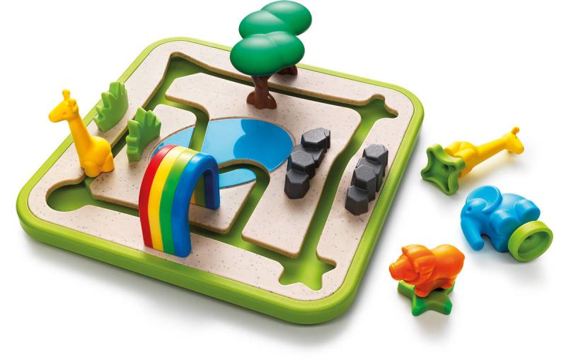 Safari park - hlavolamová hra z edice Smart Games od Mindoku. 60 rébusů - od snadných po náročné. Najděte správné místo pro fotku zvířátek na safari!Foťte zvířátka na safari! Dokážete dostat zvířátka na safari do pozice pro dokonalou fotku? Posunujte je po hrací desce na správná místa. Nezapomeňte ale, že lev nemá rád vodu, slon nezvládne vyšplhat na skálu a žirafy jsou moc vysoké na to, aby se vešly pod stromy. Safari park je hračka a zároveň hra pro nejmenší děti. Řeště rébusy, nebo si jen hrajte a popusťte uzdu své fantazii!