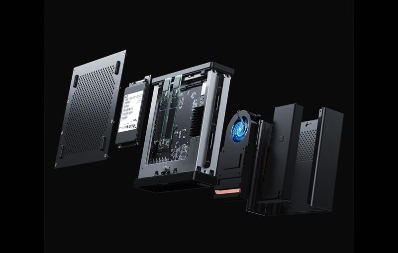 Mini-PC umožňuje pripojiť 2 disky SSD NVMe M.2 (2280/22110) s konfiguráciou RAID0/RAID1 a maximálnou kapacitou až 4 TB. Takéto riešenie zaručuje nielen bleskové rýchlosti čítania a zápisu, ale aj zabezpečenie dát.
