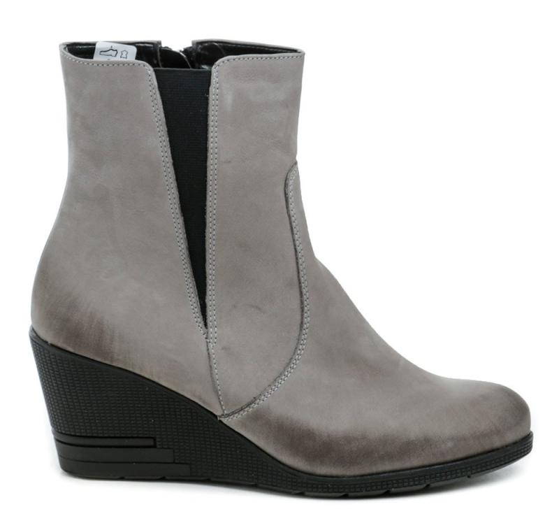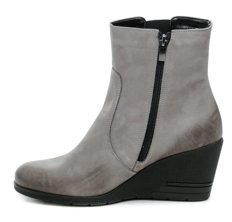 Dámska zimná členková obuv na klinovom podpätku.Obuv je vyrobená z kvalitnej pravej prírodnej kože. Vnútorná časť je bavlnená textilným filcom, ktorý tvorí zateplenie.