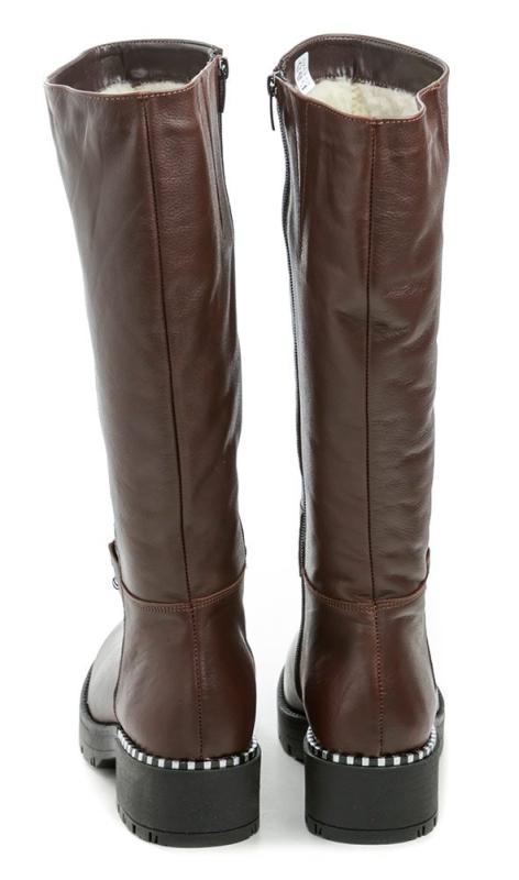 Dámská zimní vycházková obuv typu kozačky na nízkém klínku se zapínáním na zip.Obuv je vyrobena z pravé přírodní kůže. Vnitřní část je vyteplena chlupatým textilním kožíškem.