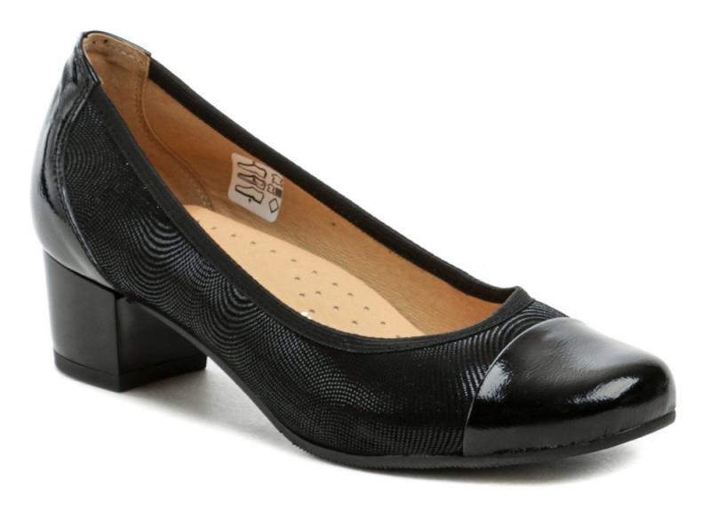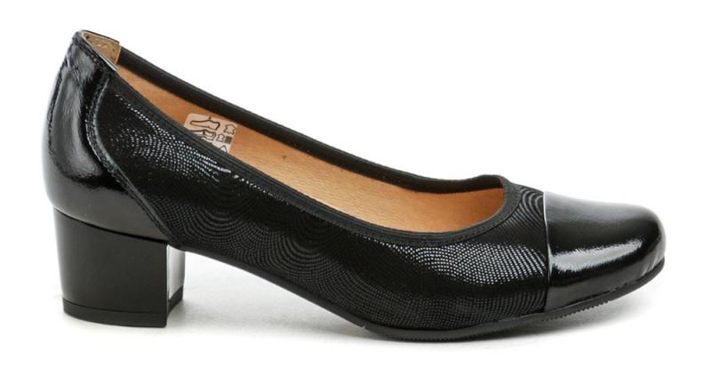 Dámská celoroční společenská i vycházková obuv na středním podpatku.Obuv je vyrobena z pravé přírodní kůže. Vnitřní část obuvi je vyrobena rovněž celá z přírodní kůže v kombinaci s textilním materiálem na opatku.