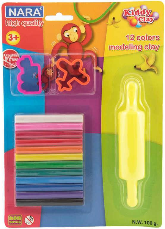 Modelína Nara 100g set 12 barev s nástroji hmota modelovací na kartě