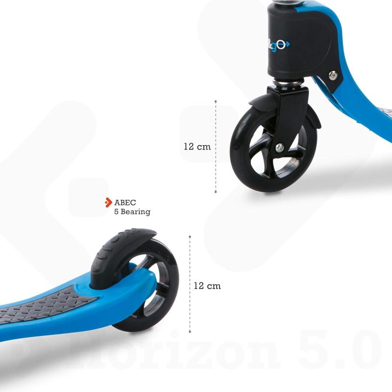 Hliníková 2-kolová kolobežka Mondo Horizon 5.0 sa vyznačuje ľahkou konštrukciou, ktorú je možné jednoducho prenášať po meste alebo do parku; súčasťou sú 120mm abec 5 kolieska