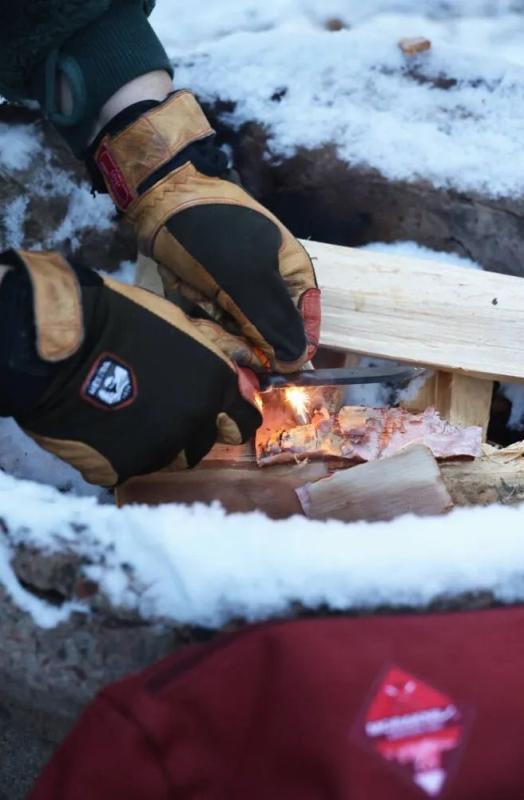 Horná časť rukoväte obsahuje závesný otvor pre jednoduché uchytenie karabíny, šnúrky alebo paracordu podľa potreby. Hrana čepele je upravená tak, aby bola kompatibilná s kresadlom, čo umožňuje zapálenie ohňa bez poškodenia ostria.