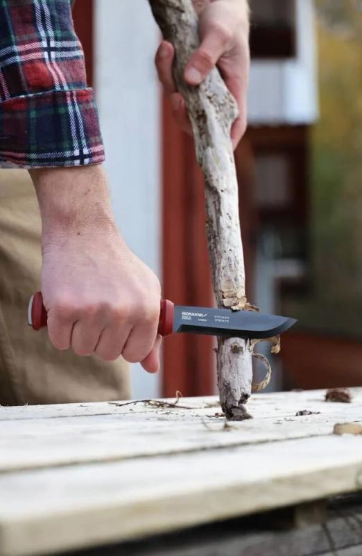 Robustný fulltang nôž s 109 mm čepeľou z uhlíkovej ocele s čiernou DLC vrstvou, pevnou rukoväťou z polyamidu a praktickým puzdrom s koženým pútkom.Tento nôž predstavuje spojenie tradičného remesla a moderného dizajnu, ktorý ocenia tak skúsení používatelia, ako aj tí, ktorí s nožmi Morakniv len začínajú. Robustná fulltang konštrukcia znamená, že čepeľ s hrúbkou 3,2 mm prechádza celým nožom až do rukoväte, čo zabezpečuje vysokú pevnosť a odolnosť pri náročnom použití.