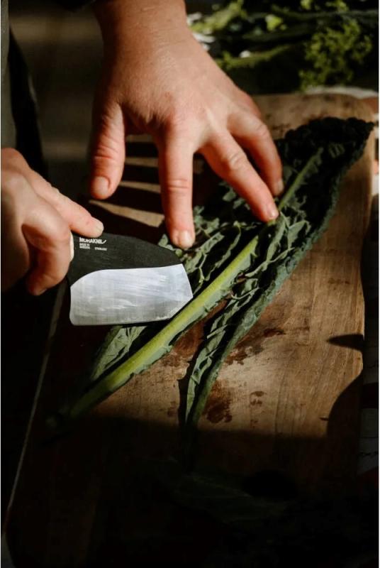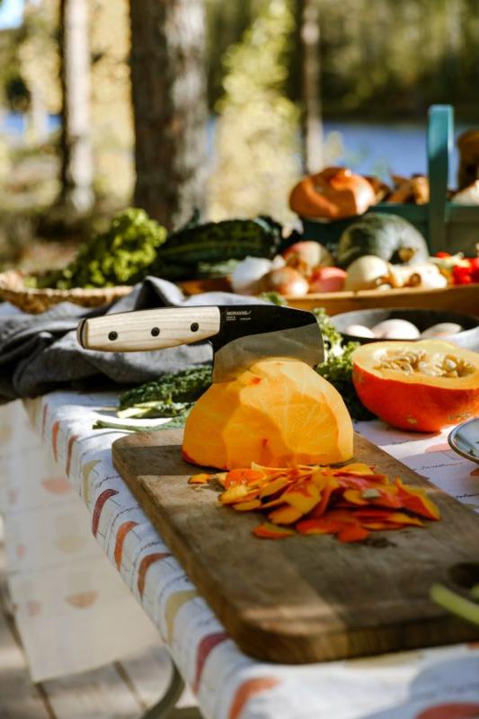 -2,5 mm silná černěná čepel typu sekáček vyrobená z recyklované švédské nerezové oceli poskytuje pevnost a stabilitu při jakémkoli řezu