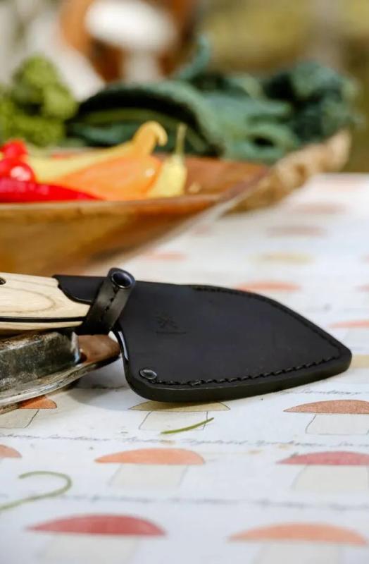 -pouzdro z černé kůže činěné zeleninou chrání ostří před ztupením a vás před možným poraněním