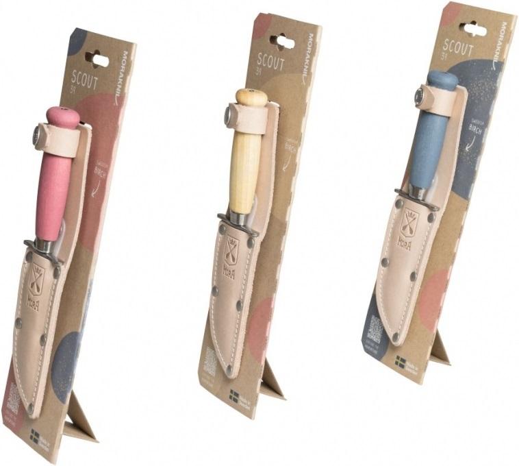 -švédsky nôž Morakniv Scout navrhnutý pre malých dobrodruhov v farbách inšpirovaných prírodou a optimalizovaný pre bezpečné použitie-súčasný klasický tvar noža vychádza z modelu z roku 1930, ale história výroby siaha až do roku 1891 - v regióne Mora sa podobné nože vyrábali už v 16. storočí