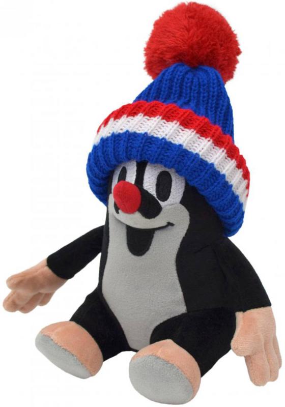 Moravská ústředna Krtek (Krteček) sedící 20cm modrý kulich trikolora PLYŠ