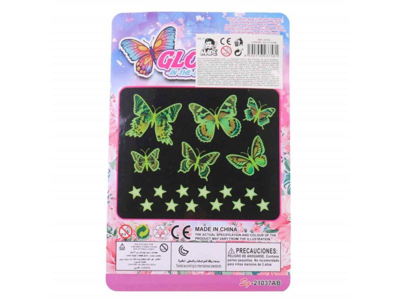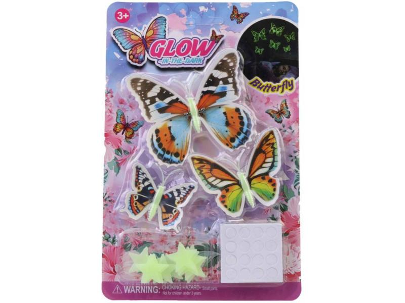 Motýli 3D + hvězdičky nástěnná dekorace svítící ve tmě