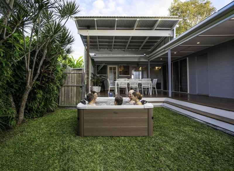 Táto mobilná vírivá vaňa pojme až6 dospelých osôbzároveň! Svojou konštrukciou pripomína pevné vírivky. Je vybavená120 vzduchovými a 8 nastaviteľnými hydromasážnymi tryskami a samozrejme aj účinným ohrevom vody. Obsahuje tiež vrchný kryt, ktorý pomôže udržať teplotu vody stále vysoko. Bezpečnostné klipsne zabezpečia, že zostane bezpečne uzavretá.