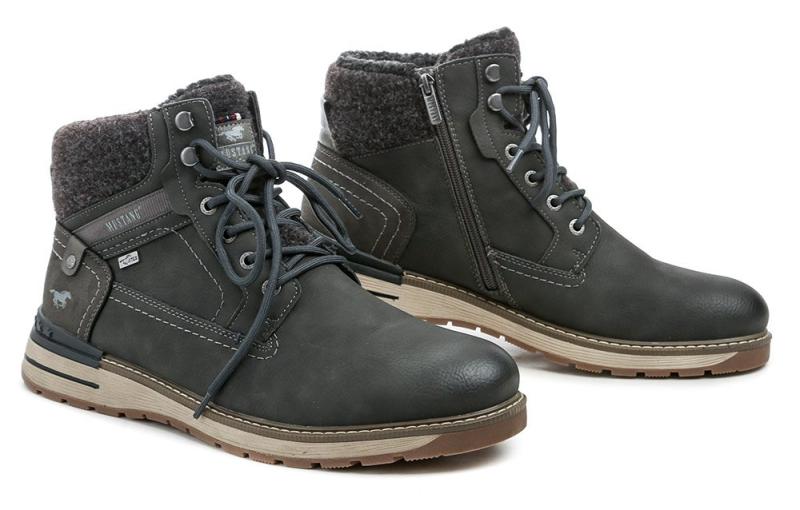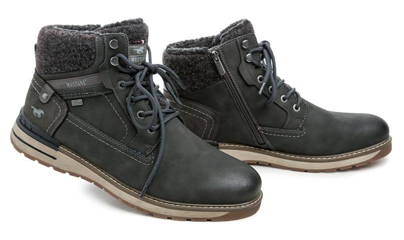 Pánské zimní kotníčkové boty se zapínáním na zip a šněrováním, s voděodolnou membránou MustangTEX a teplým textilním kožíškem uvnitř.