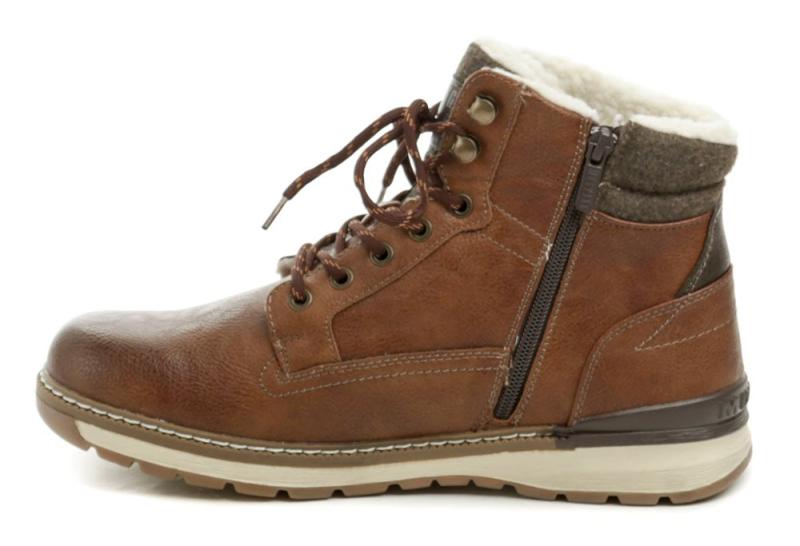 Pánska zimná vychádzková obuv na šnurovanie i zapínanie na zips.Štýlové členkové topánky značky Mustang.