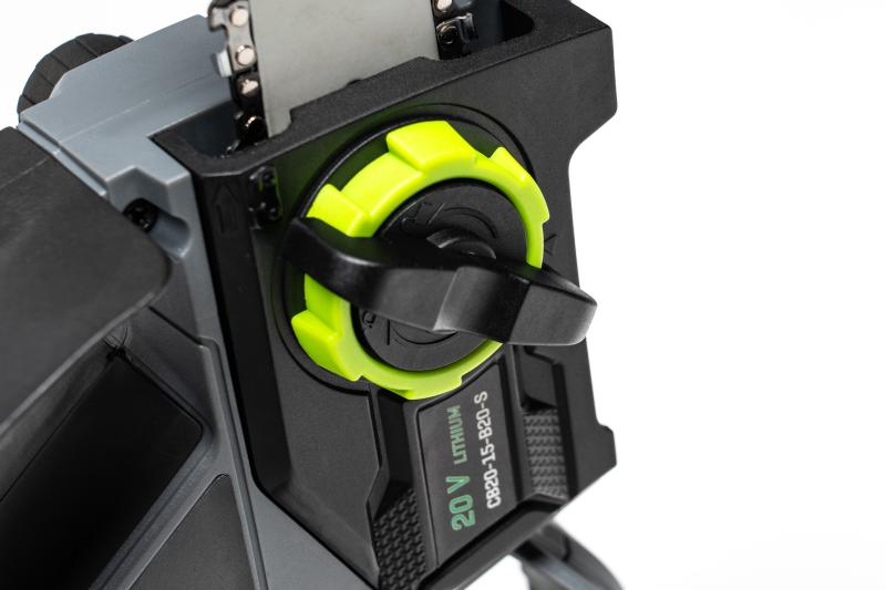 Řetězovou pilu pohání lithium-iontová baterie 20 V, 2 000 mAh. Po vybití ji jednoduše dobijete pomocí nabíječky, která je součástí balení. Nabití do plné kapacity baterie trvá pouhých 80 minut.Volný pohyb
