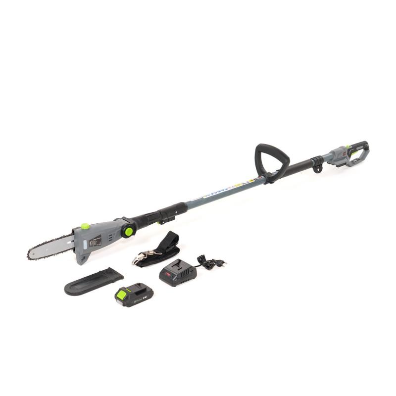 Teleskopická aku pila, dosah 190–270 cm, lišta a řetěz Oregon, rychlost 5,5 m/s, akumulátor 20 V 2 Ah. Zobrazit celý popis