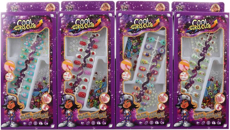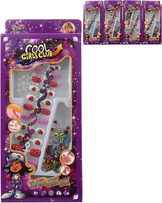 Dětské nalepovací nehty, součástí samolepky, pilník a korálky (s písmenky) s provázkem na výrobu náramku. 4 varianty provedení.Sada je ideální pro hraní si na domácí kosmetický salón a umožňuje dívkám experimentovat se svým vzhledem a vyjádřit svou kreativitu. Je to také skvělý nápad na dárek nebo doplněk na hraní, který jistě přinese spoustu zábavy a umožní cítit se jako skutečná módní hvězda.