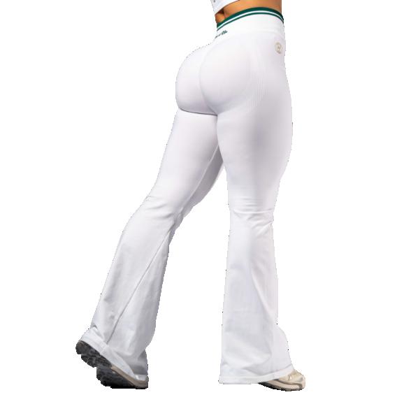 Síla a elegance propojené do high-class legín. Flared střih zvýrazní siluetu a opticky prodlouží nohy, zatímco vysoký pas podpoří tvé abs a vizuálně zúží pas. Čistý Royal White design, tvarující linie a zlaté akcenty – dokonalá estetika, která je nepřehlédnutelná, ale nekřičí.