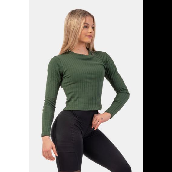 Nebbia Žebrované tričko s dlouhým rukávem z organické bavlny 415 POUZE XS - zelená (VÝPRODEJ)