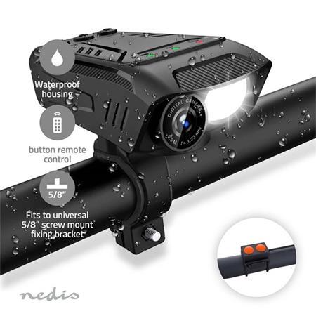 Nedis CCAM100BK - Cyklistická Kamera | 1080p@30fps | 2 MPixel | 600 min | 70 ° | 600 min | Včetně držáků | Černá