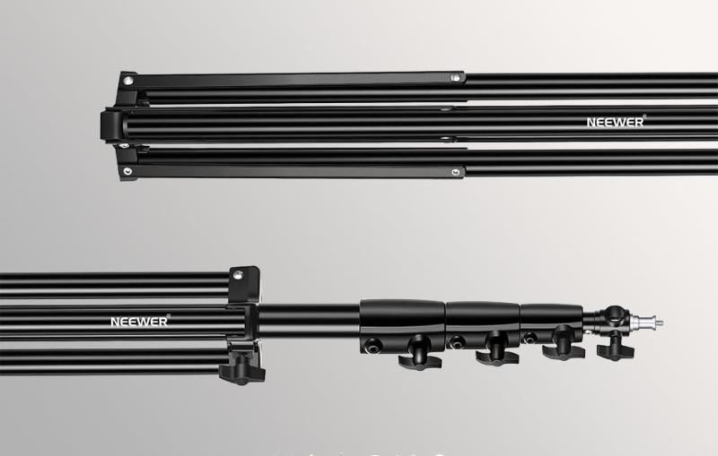 Stativ Neewer je vyroben z odolného kovu a je ideální nejen pro použití ve studiu, ale i v exteriéru. Gumové podložky na nohách stativu zajišťují stabilitu a chrání povrch před poškrábáním. Stativ je schopen udržet zařízení o hmotnosti až 3 kg, takže je spolehlivou volbou pro mnoho fotografických aplikací.