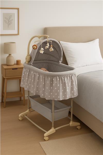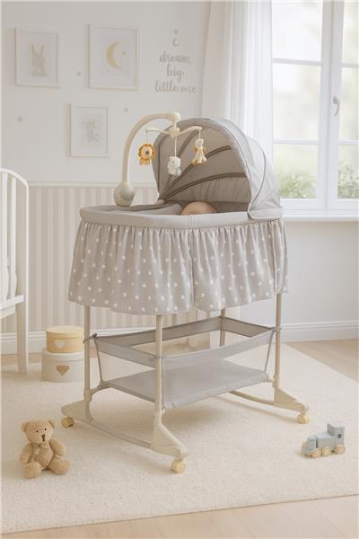 Multifunkční dětská kolébka New Baby je ideální volbou jak pro děti, tak pro rodiče, pro které je klíčová funkčnost a bezpečí. Výrobek slouží jako postýlka i kolébka. Její mobilita poskytuje obrovské pohodlí, protože dítě bude vždy v blízkosti svých rodičů. Praktický koš vám umožní mít vše potřebné na dosah ruky a včas reagovat na potřeby mrňouska, aniž byste se od něj museli vzdalovat. Potah kolébky je vyroben z prodyšného a příjemného na dotek materiálu, který lze snadno sundat a vyprat. Kolotoč s barevnými zvířátky je vybaven nočním světlem, hudebním modulem s 8 melodiemi a funkcí jemných vibrací s možností změny jejich intenzity. Je napájen 3 bateriemi AA LR6-1,5 V (nejsou součástí dodávky). Jednu ze stran postýlky lze rozepnout, což oceníte během každodenní a často i noční péči o Vaše děťátko.Součástí balení je návod na montáž a popis všech důležitých funkcí.