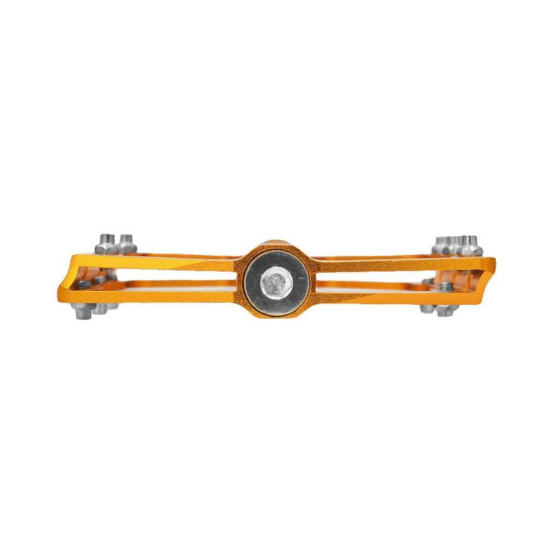 Platformové pedály jsou vyrobené přesnou technologií CNC z kvalitního materiálu Alu 6061, který zajišťuje odolnost a nízkou hmotnost. Díky průmyslovým ložiskům je chod pedálů hladký a spolehlivý, což oceníte při každé jízdě.
