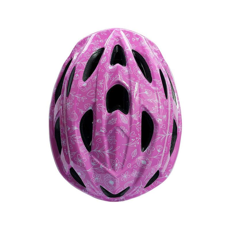 Výrazná růžová barva s květinovým motivem přidává přilbě atraktivní vzhled, který děti rády nosí. Přilba splňuje základní bezpečnostní standardy a je vhodná pro každodenní použití.