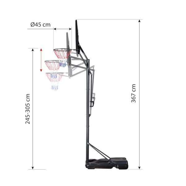 - Výška obruče od zeme: 2,45 - 3,05 m