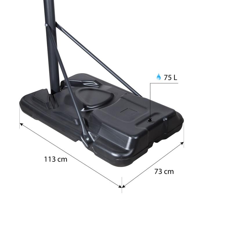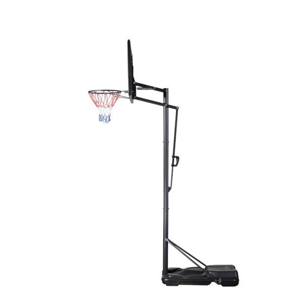 Vďaka možnosti nastavenia výšky sa kôš dokonale prispôsobí vašim potrebám. Či už ste začiatočník, alebo skúsený šampión, náš kôš vám poskytne dokonalé nastavenie pre maximálne využitie vášho potenciálu. Zmena výšky sa vykonáva uchopením madla, stlačením tlačidla a posunom madla po regulačnej tyči, ktorá je cejchovaná, aby ste okamžite vedeli, v akej výške sa aktuálne nachádza obruč. Výšku obruče možno nastaviť do 5 úrovní v rozsahu od 2,45 do 3,05 metra.