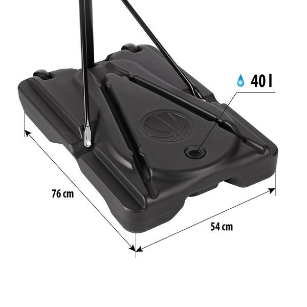 Kôš ZDK8305 bol vyrobený z vysoko kvalitných a odolných materiálov, ktoré zabezpečujú spoľahlivosť a dlhú životnosť aj pri náročnom používaní. Vďaka robustnej konštrukcii a odolnosti voči poveternostným vplyvom je náš kôš ideálny pre vnútorné aj vonkajšie použitie. Doska s rozmermi 78 x 58 centimetrov je vyrobená z priehľadného PE a vydrží aj tie najtvrdšie nárazy. Oceľový obruč s priemerom 42 centimetrov je spojený s doskou pomocou 4 skrutiek. Do základne s rozmermi 76 x 54 centimetrov sa zmestí 40 litrov vody pre maximálnu stabilitu koša. Pre dobrú mobilitu je základňa osadená kolieskami pre jednoduché presúvanie.