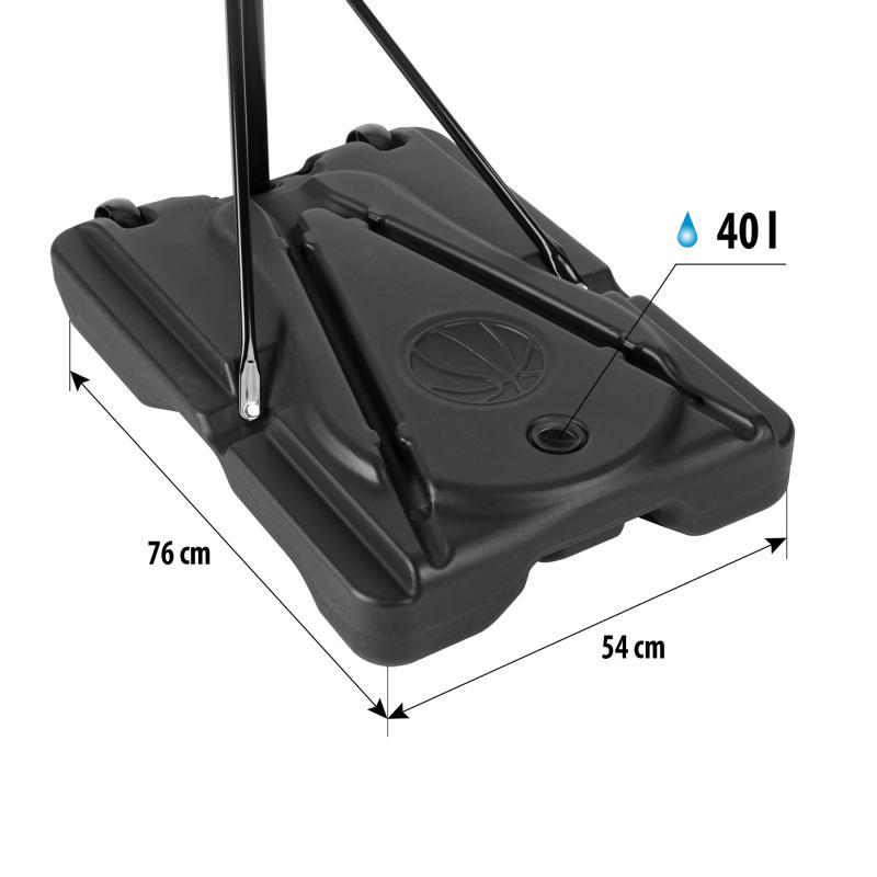 Koš ZDK8305 byl vyroben z vysoce kvalitních a odolných materiálů, které zajišťují spolehlivost a dlouhou životnost i při náročném používání. Díky robustní konstrukci a odolnosti vůči povětrnostním vlivům je náš koš ideální pro vnitřní i venkovní použití. Deska o rozměrech 78 x 58 centimetrů je vyrobená z průhledného PE a vydrží i ty nejtvrdší rány. Ocelová obruč o průměru 42 centimetrů je spojena s deskou pomocí 4 šroubů. Do základny o rozměrech 76 x 54 centimetrů se vejde 40 litrů vody pro maximální stabilitu koše. Pro dobrou mobilitu je základna osazena kolečky pro snadné přesouvání.