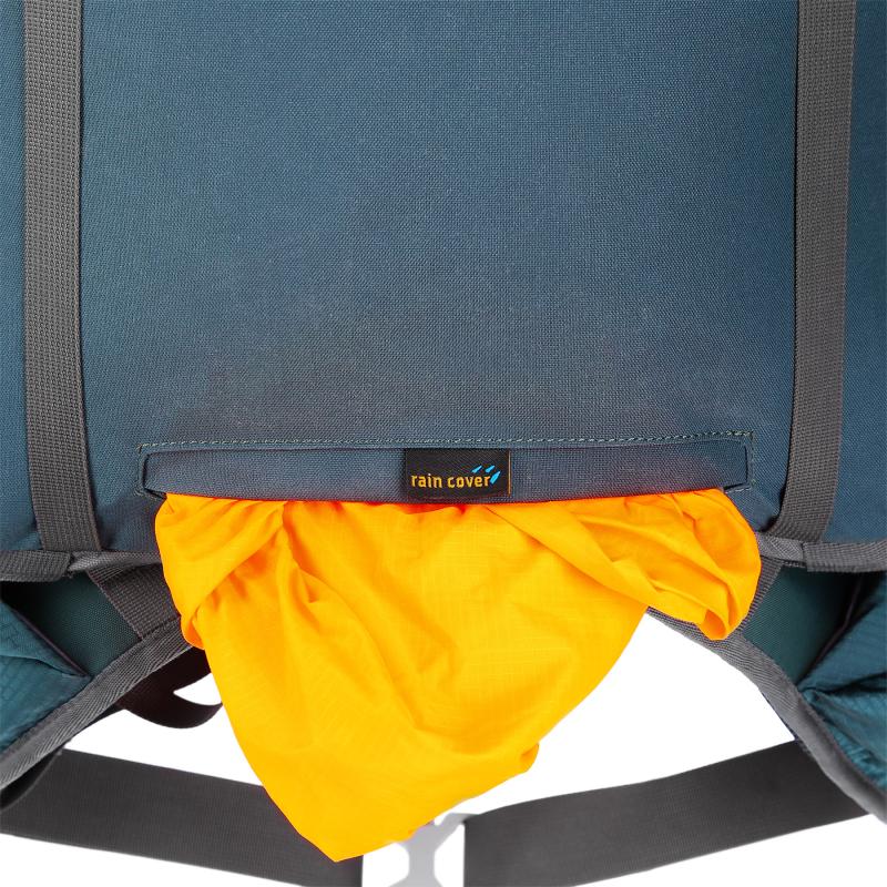 Hlavní komora se z horní části uzavírá stahovací šňůrkou s brzdičkou a vrchlíkem na 2 plastové přezky, ze spodní části lze do komory přistoupit pomocí klopy opatřené dvoucestným zipem. Po stranách batohu jsou síťované kapsy s gumičkou v lemu, nad kapsami se nachází délkově nastavitelné popruhy, pod které lze umístit například vyšší láhev, nebo karimatku. Z čela batohu se nachází 2 gumová poutka a 2 smyčky pro přenášení turistických holí, 7 poutek pro zavěšení například kempingového vybavení nebo blikačky pro zvýšení viditelnosti za šera. Další 2 kapsy na jednocestný zip mají své místo na bederním popruhu. Ve spodní části batohu jsou dodatečné 2 délkové nastavitelné popruhy, které prochází plastovým okem a jsou tedy rozděleny na 2 sekce, pod tyto popruhy lze umístit další vybavení, jako například menší stan, městský batoh apod.