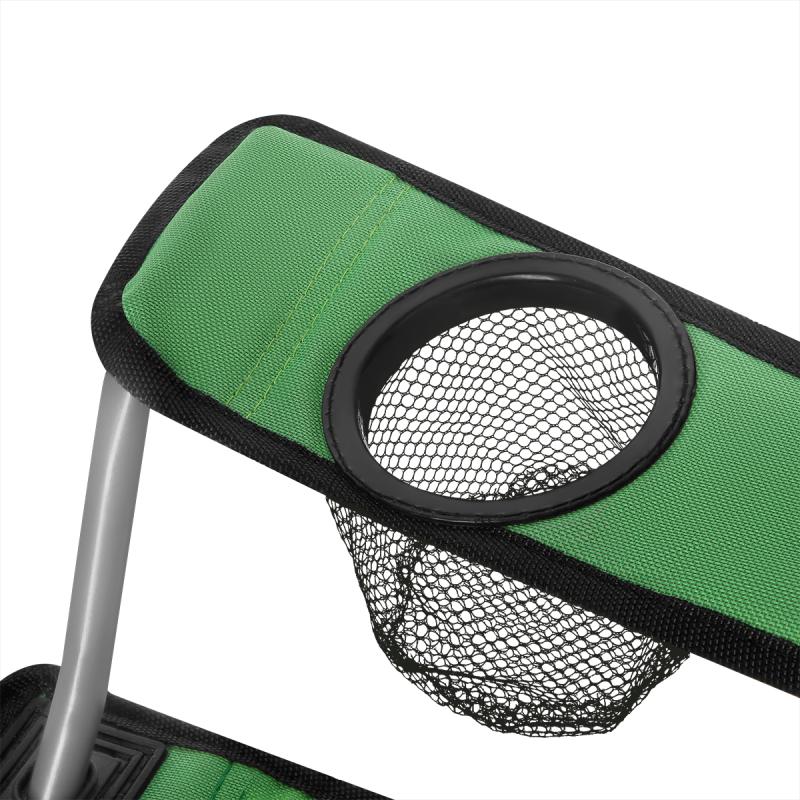 Loketné opierky majú možnosť regulácie výšky jednoduchým posunom zadnej časti po profile konštrukcie. Pravá opierka lakťa je opatrená košíkom, do ktorého sa pohodlne zmestí menšia fľaša, alebo vysoký pohár. Pre ľahké prenášanie je možné stoličku zložiť. Súčasťou je ochranný obal s popruhom cez rameno.