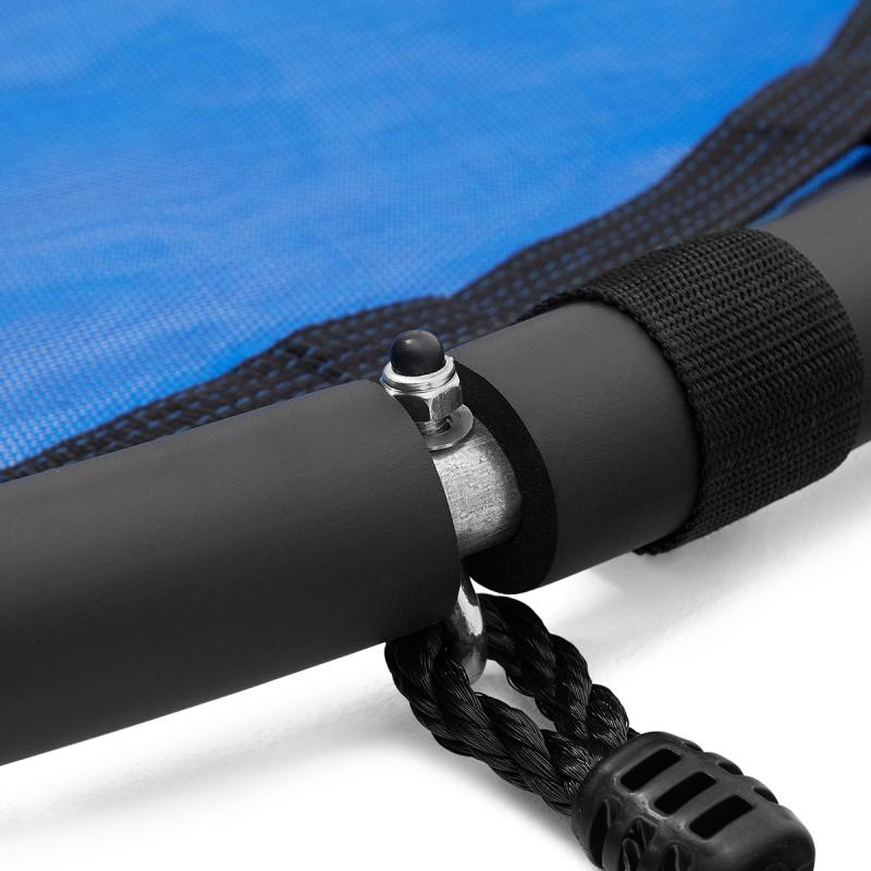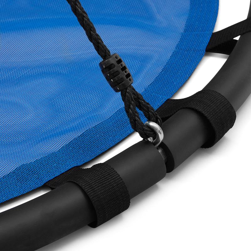 Rám o průměru 110 centimetrů je vyroben z ocelové kulatiny o průměru 25 milimetrů, na které je pro maximální bezpečí nalepena vysoká vrstva PE pěny. Textilní potah modelu NB5035 je maximálně odolný vůči povětrnostím vlivům jako je déšť a sníh, hnízdo tak nemusíte schovávat když zrovna začne pršet. Nosná, polyetylénová lanka mají průměr 10 milimetrů a délku 180 cm. Když tyto vlastnosti zkombinujeme tak získáme prostornou houpačku s nosností 150 kilogramů, na které se vyřádí i více dětí najednou.