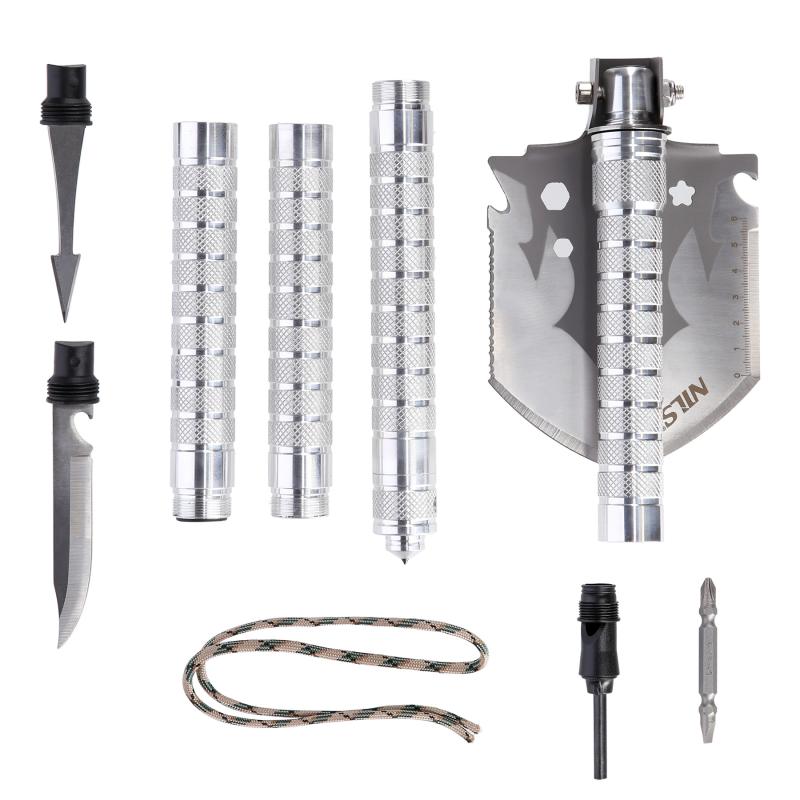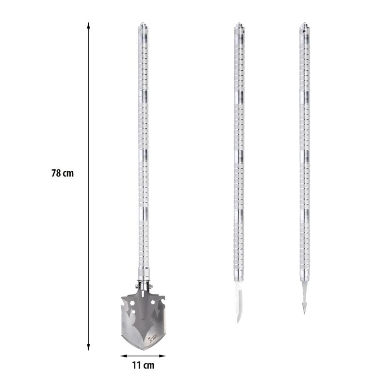 Tato multifunkční lopata má řadu různých nástrojů: od pily, rýče, motyky, štěpkovače, nože až po podpalovač, udidla, provazový nůž, rozbíječ skla, krejčovský metr, otvírák, špíz, a dokonce i píšťalka - vše potřebné v obtížných situacích.polních podmínkách. S lopatou NC1752 budete připraveni na jakýkoli úkol, ať už jde o stavbu přístřešku, přežití v divočině, pomoc v nouzi nebo práci na zahradě. Přiložený kufřík usnadňuje přepravu a vestavěné nástroje z něj dělají jednu z nejuniverzálnějších součástí vybavení pro každého nadšence dobrodružství. Vyberte si multifunkční ultralehkou lopatu NILS Camp NC1752 a zažijte všestrannost bez dodatečné hmotnosti. Ať už upravujete terén, prosekáváte se překážkami nebo připravujete kemp, tato lopata je dokonalou kombinací spolehlivosti a mobility, která vám pomůže zůstat v těch nejnáročnějších prostředích.
