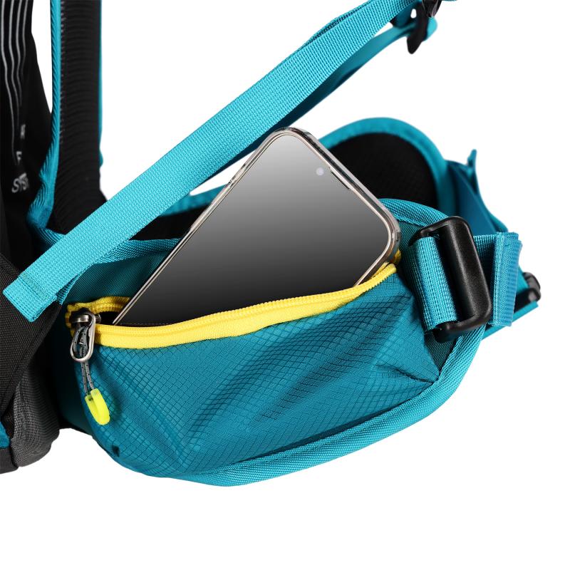 Hlavná komora na dvojcestný zips je vybavená kapsou na hydrovak, ktorý je možné zavesiť na remienok so suchým zipsom. Druhá, menšia komora je tiež vybavená dvojcestným zipsom a vo vnútri sa nachádzajú 2 sieťované vrecká na drobnosti. Predný panel tvorí rozmerná kapsa, do ktorej sa pristupuje 15 cm dlhým, jednocestným zipsom z pravej strany. Po stranách batohu sú sieťované vrecká s gumou v leme, nad vreckami sa nachádzajú dĺžkovo nastaviteľné popruhy s prackou, pod ktoré je možné umiestniť napríklad vyššiu fľašu. Na bedrovom páse sú 2 vrecká na zips, do ktorých sa zmestia napríklad kľúče alebo multitool. Z čela batohu sa nachádzajú 2 gumové pútka a 2 slučky na prenášanie turistických palíc.